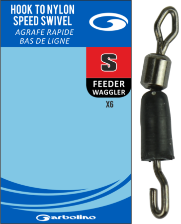 HOOK TO NYLON SPEED SWIVEL TabsProduct OverviewMicro swivel with built in quick change hook length system. Designed to change hook lengths in seconds and also eliminating line spin. Ideal for feeder, bomb and waggler. Could even be used on pole rigs. Available in two sizes, 6 per pack. Specification SKU: GOFAH1303-S Description: SmallPrice: £3.99 SKU: GOFAH1303-M Description: MediumPrice: £3.99