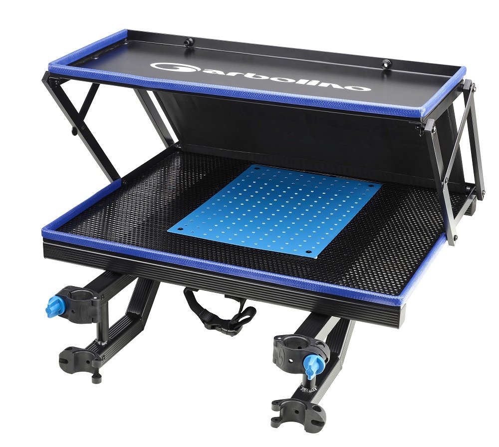 DELUXE SQUADRA MULTIGRIP DOUBLE STACK SIDE TRAY TabsProduct OverviewWe have now designed a new generation of legless sidetrays in the Sqaudra range. This new two-tone black and blue range of trays features a protective rubber trim round the side tray edges for maximum protection. The double stack design enables you to keep all the bits than you need to hand separate from the main tray where your bait is kept. The double stack back panel also provides protection to your bait on the lower tray. In the centre of the main side tray is a blue perforated panel. This can be removed and replaced with one of our Garbolino collapsible bowls. There are also threaded inserts on the top stack so additional roosts or collapsible tents can be added. Features our innovative Multi-grip design fixings which are compatible with 25, 30 and 36 inch leg systems. Dimensions: Bottom tray 60 x 50cm Top tray 60 x 25cm. Specification Multigrip system Removable section for bowls D25 D30 & D36 Leg compatible No support legs needed Folds away for easy transportation Double stack design SKU: GOMEM3637 Price: £259.99