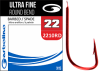 COMPETITION ULTRA FINE ROUND BEND MATCH RED TabsProduct OverviewOur consultants have been working together to produce the ultimate range of hooks that will cover all aspects of match fishing. Whether its F1s, large carp, skimmers, or silvers on natural venues, you will find a hook in our fantastic new range that will suit your needs. Competition "ULTRA FINE RED ROUND BEND MATCH". A red ultra fine wire, spade end, micro-barbed hook with super sharp long points. The rounded bend makes this range of hooks ideal for silvers with red baits such as maggots, pinkies and bloodworm. 15 hooks per pack. Specification Red Micro barb Rounded Spade end Fine wire SKU: GOMHJ42210RD-0016 Size: 16Price: £2.99 SKU: GOMHJ42210RD-0018 Size: 18Price: £2.99 SKU: GOMHJ42210RD-0020 Size: 20Price: £2.99 SKU: GOMHJ42210RD-0022 Size: 22Price: £2.99